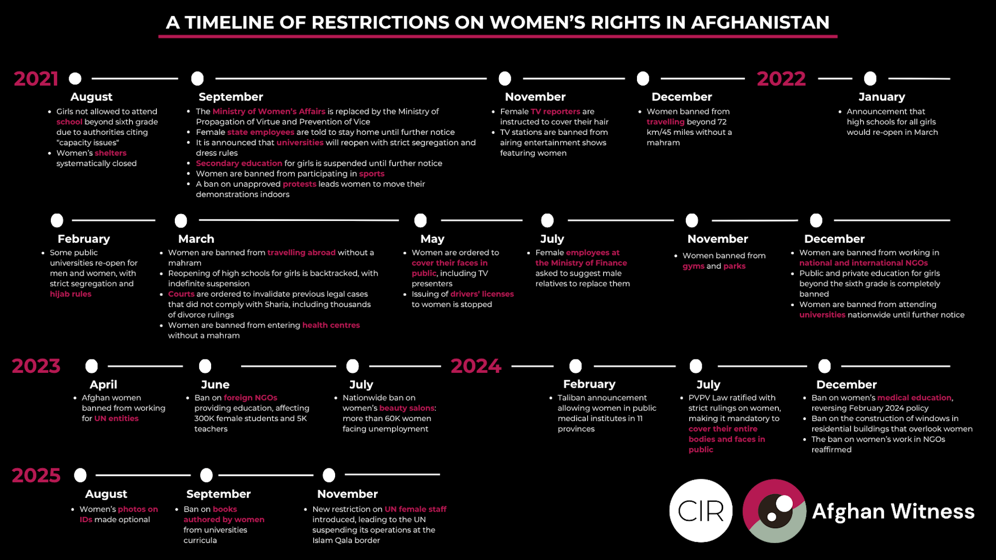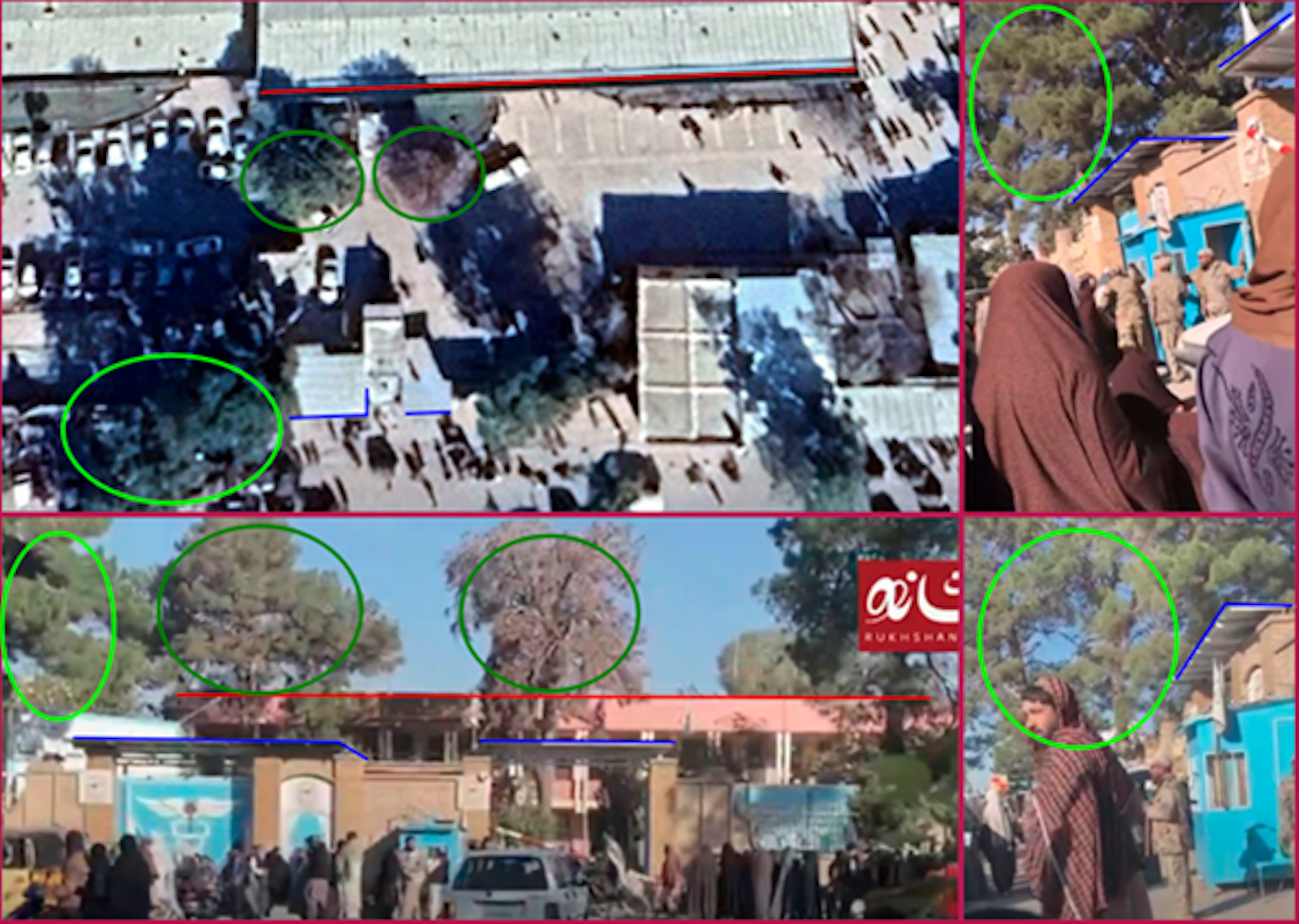 Despite his assurances, AW geolocated several videos shared on social media on 9 November 2025 to the main gate of Herat Regional Hospital, the largest hospital in western Afghanistan. The footage showed a large crowd of women, many accompanied by young children, attempting to enter the hospital as Taliban members in military uniform and ombudsmen from the Ministry for the Propagation of Virtue and the Prevention of Vice (MPVPV) prevented them from doing so, in some instances through the use of violence.