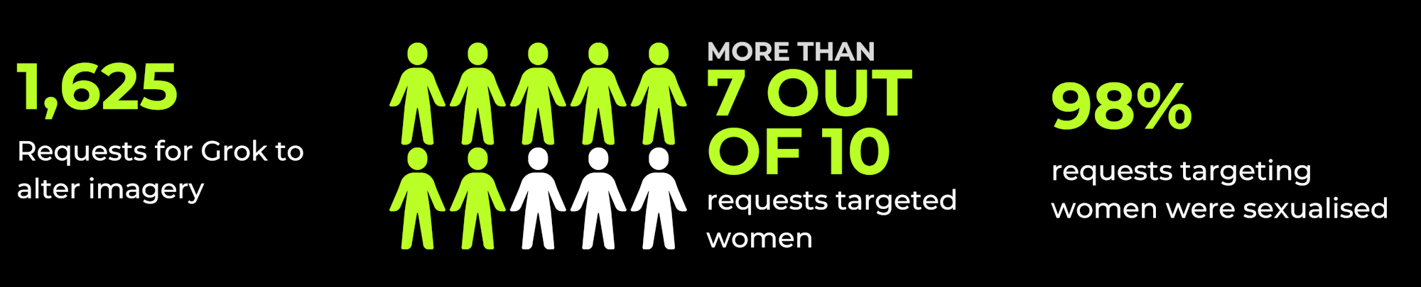 CIR obtained data for a one hour time period on X – from 10:59 to 11:59 on 7 January – during this timeframe, we identified more than 1,641 requests for Grok to generate imagery. While inexhaustive, the analysis aligns with trends seen in wider reporting, aiding public knowledge through quantifiable data.
