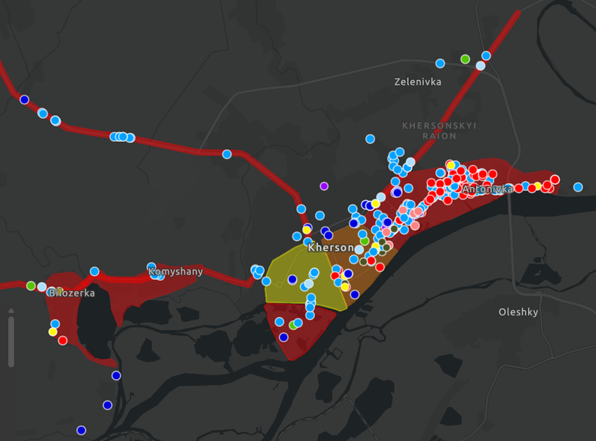 | Russian Firing Positions | Signs of where Russian military assets have fired from or are seen firing from |
