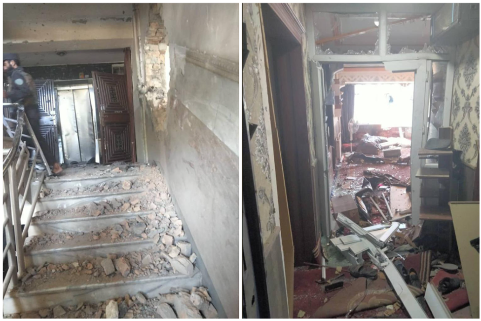 در حالی که اجساد مهاجمان ادعایی در پشت بام ساختمان پیدا شد تصاویر به اشتراک گذاشته شده در شبکه های اجتماعی نشان می دهد که درگیری یا حمله به آپارتمان توسط نیروهای امنیتی برای جابجایی مهاجمان صورت گرفته است. خسارات سنگین نشان می دهد که در داخل ساختمان از مواد منفجره استفاده شده است چه توسط مهاجمان و چه نیروهای امنیتی بالقوه هنگام یورش به بلوک. یک تصویر مقدار قابل توجهی خون را روی پلههای داخلی بلوک آپارتمان نشان میدهد که نشان میدهد مهاجمان ادعایی در هنگام حمله نیروهای امنیتی از ساختمان به سمت بالا حرکت کردهاند درگیری روی پله ها قبل از کشته شدن دو نفر در پشت بام و دیگری در اتاق منتهی به ساختمان سقف.