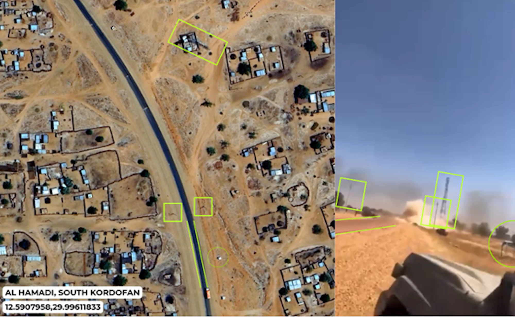 - Just over a week later, on 18 April, CIR verified the presence of both RSF and SAF in Al Hamadi. Geolocated footage confirms a significant build-up of military vehicles and intense fighting on the main road through the city.